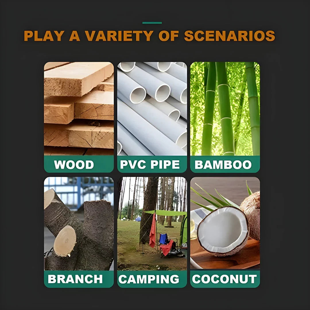 - Can be used to cut wood, gypsum board, branches, PVC tubes, etc. with a thickness of 1.6 inches (4 cm). Can be used to trim excess branches in your garden. When camping, you can use it to cut branches to make fire. When you are hiking you can cut off branches that will prevent your progress